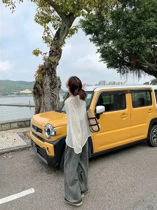 New Female Personality Loose Casual Solid Pullovers Women Breathable Hollow Out Lazy Style Japanese Version Sweater Summer