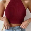 Color Jelly Bean Women Casual Ribbed Knit Sleeveless Summer Sweater Tops Halter Crop Tops Y2k Clothes Femme Stretch Pullover