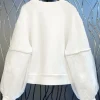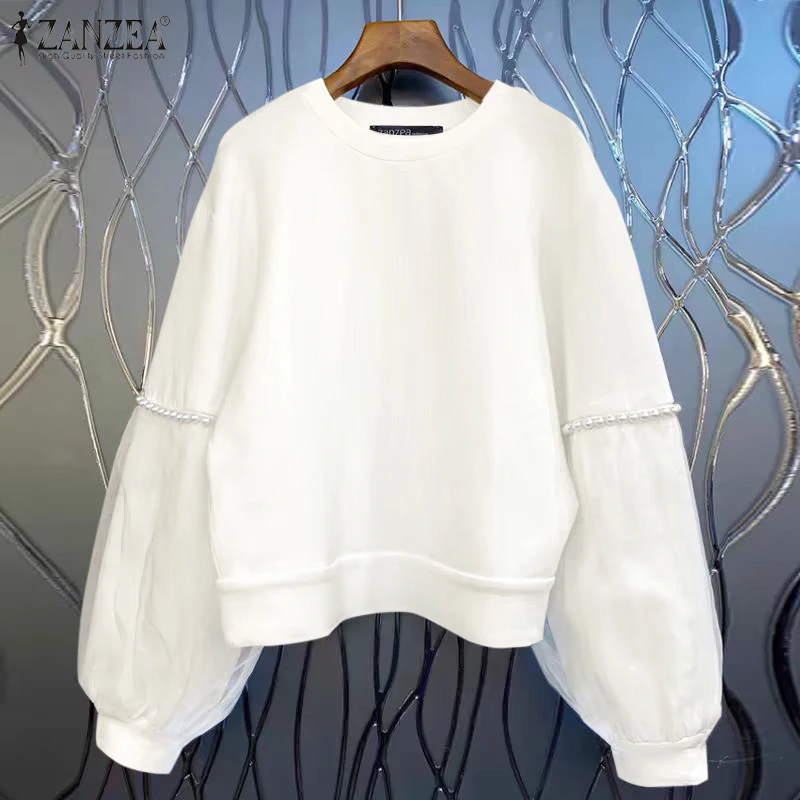 ZANZEA 2025 Autumn Women Sweatshirt Vintage Pearl Mesh Splicing Hoodies Fashiong Long Sleeve Pullovers Casual Korean Jumpers